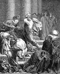 En Marcos 3:5, dice que Jesús estaba entristecido por la dureza de sus corazones. Así es que un verdadero profeta, movido por el Espíritu de su Señor, primero es quebrantado: su corazón es todo menos endurecido. En Lucas 19, Jesús ciertamente hizo un látigo de cuerdas. Sólo cuatro versículos antes (19:41) Jesús lloró sobre Jerusalén. “Llorar” en ese versículo no es “derramar lágrimas” (dakrúo – Juan 11:35) sino “gemir, gritar, sollozar” (klaio). Jesús lloró sobre Jerusalén.